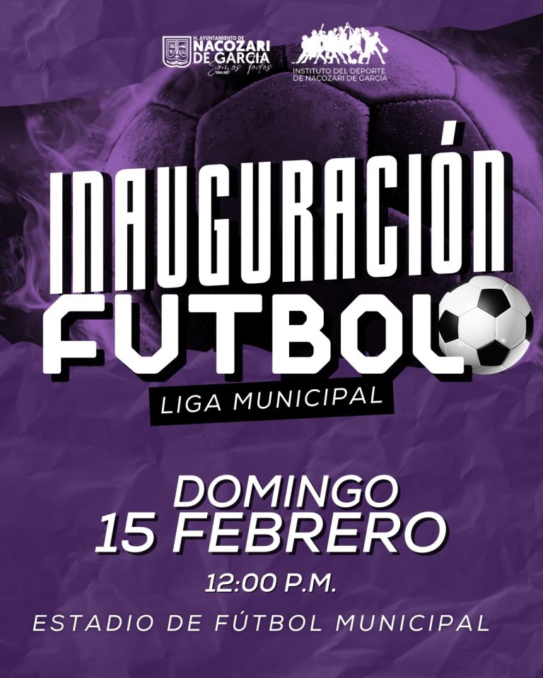 El H. Ayuntamiento de Nacozari de García, a través del Instituto del Deporte, invita a la comunidad a la inauguración de la Liga Municipal de Fútbol.