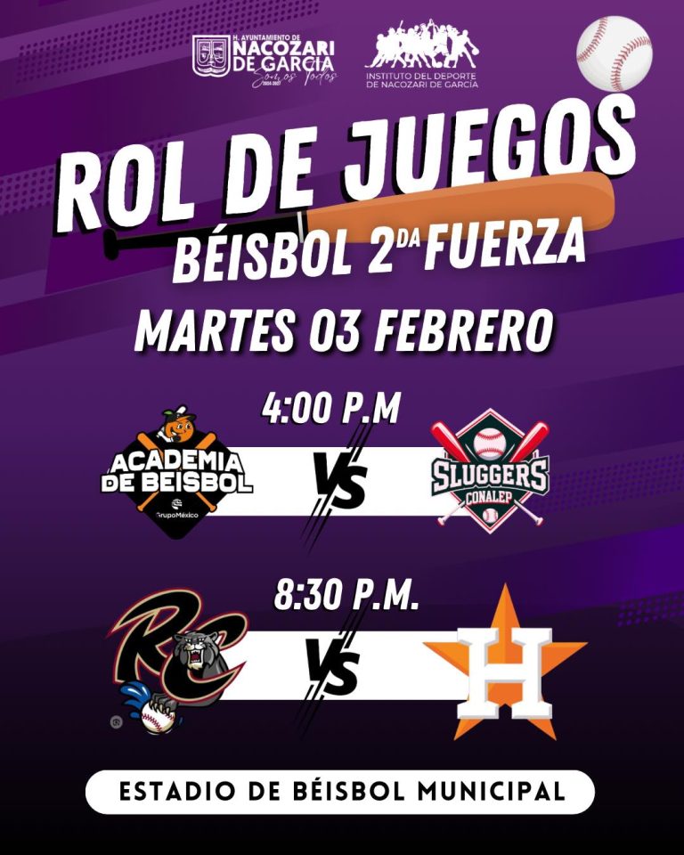 El H. Ayuntamiento de Nacozari de García a través del Instituto del Deporte, te invita a disfrutar de la jornada de la Liga de Béisbol de 2da Fuerza.